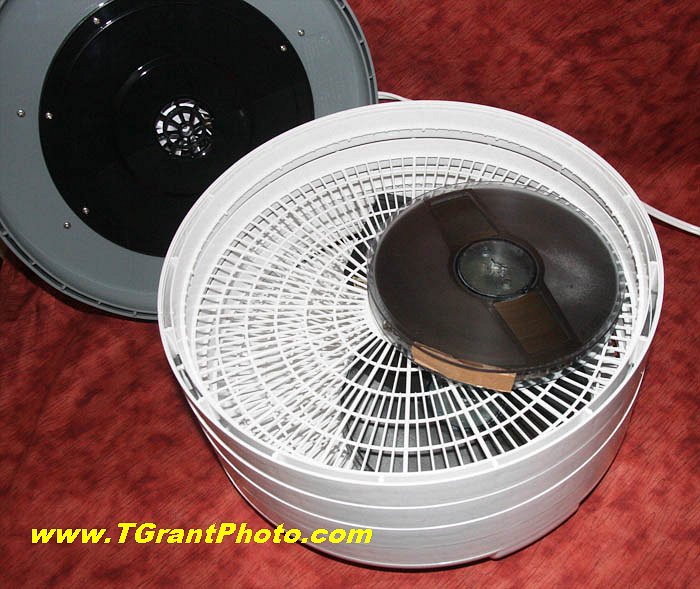 Once the dehydrator's temperature has stabilized, it usually stays within 2-3°F of the desired 125°F. In case you're concerned, 125°F won't melt the plastic tape reel or videocassette housing.