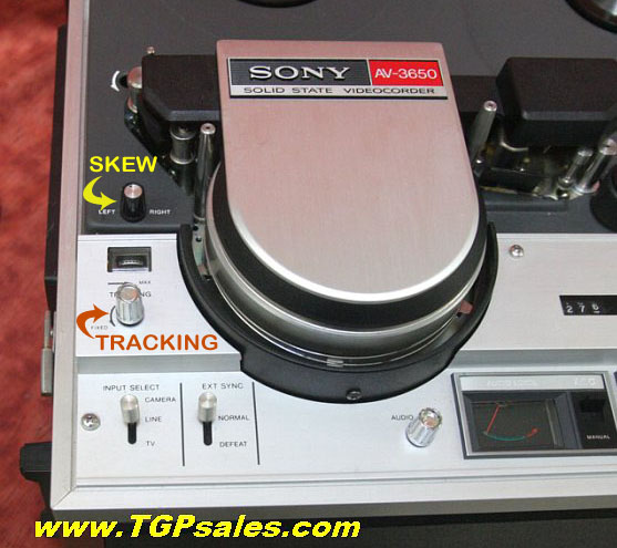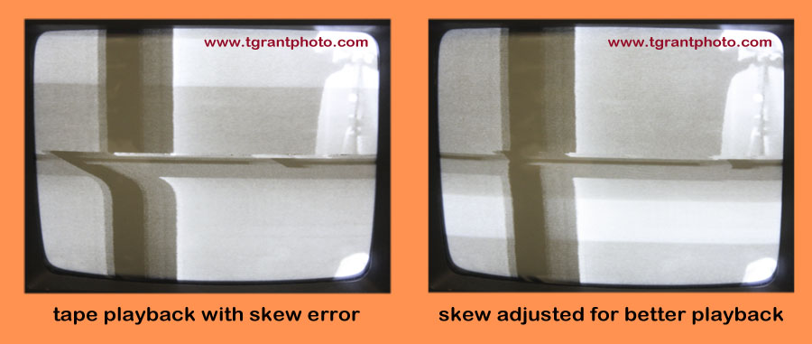 Skew - Use the "skew" adjustment knob to vary the back tension as the tape plays. It's very helpful to monitor the tape playback on a pulse-cross monitor. Adjust the skew for the best placement of the sync (see photos)