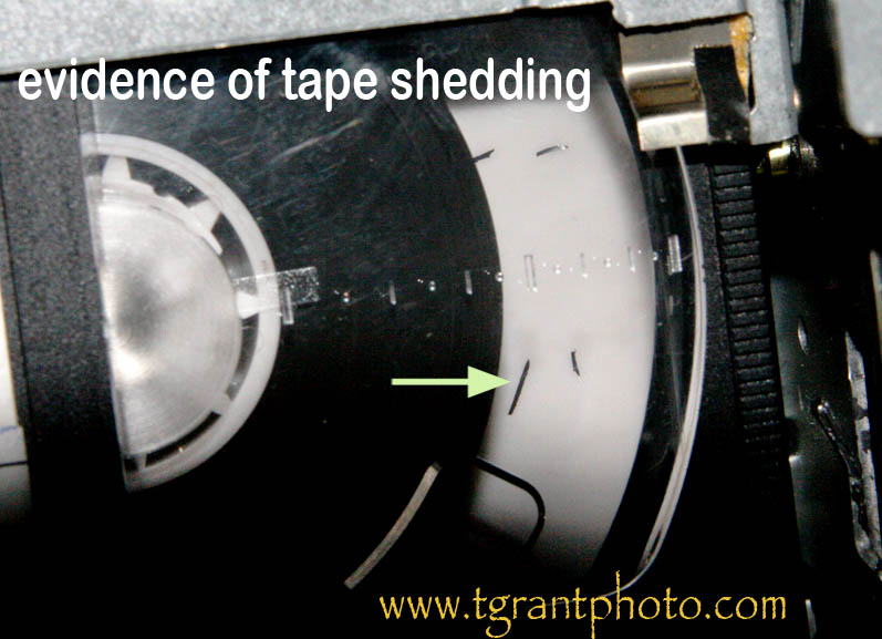above: tape shedding inside a VHS cassette