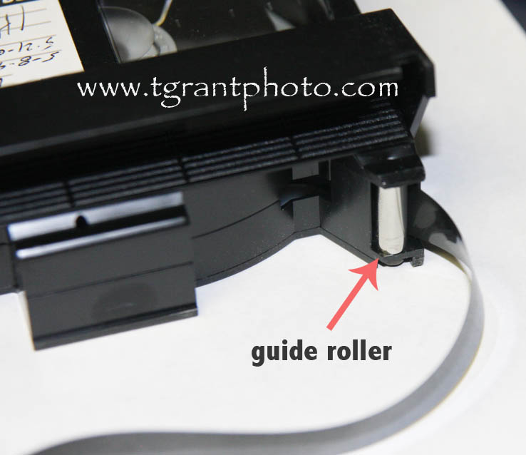 above - evidence of tape shedding (or stickiness) on one of the guide rollers. Also, notice the residue at the bottom of the head drum