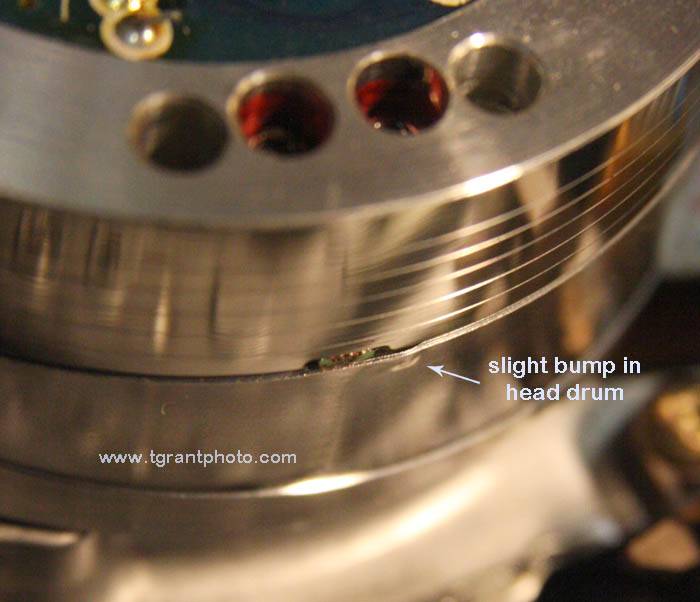 My VCR's video head drum has a small bump in it, just below where the video heads spin