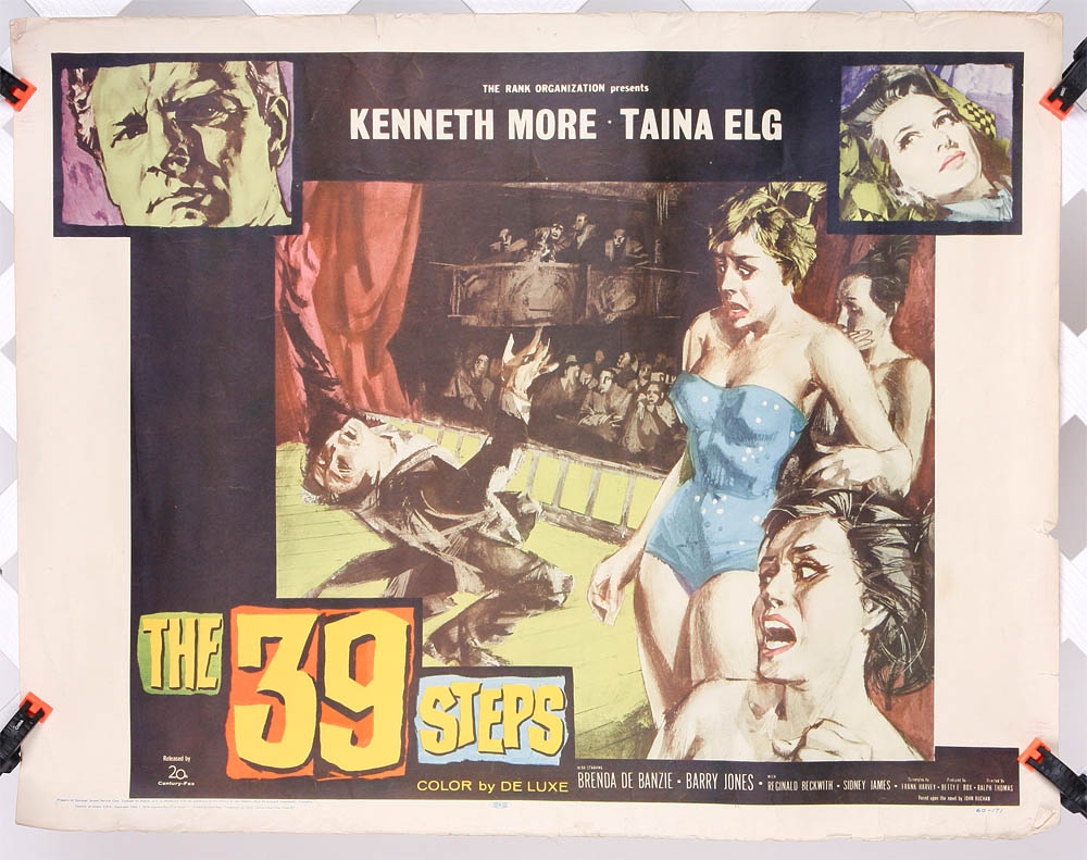 Collectible movie poster with wonderful artwork. The 39 Steps featured Kenneth More and Taina Elg in this remake of the '30's Hitchcock film. Poster no. 60/171