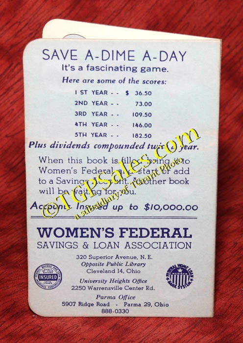 Women's Federal Pocket DimeSaver. Made on heavy card stock. Good condition, slight yellowing around edges.