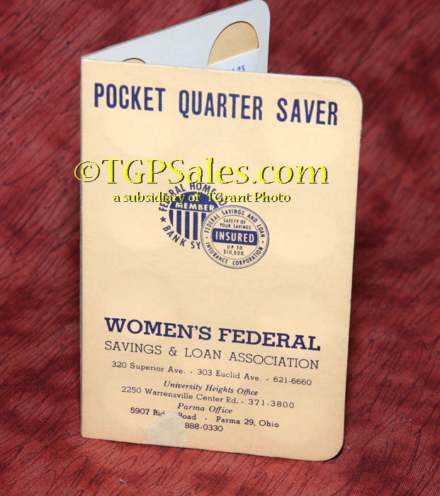 Women's Federal Pocket Quarter Saver. Made on heavy card stock. Good condition, slight yellowing around edges. small tear on bottom of front cover, one or two minor defects.